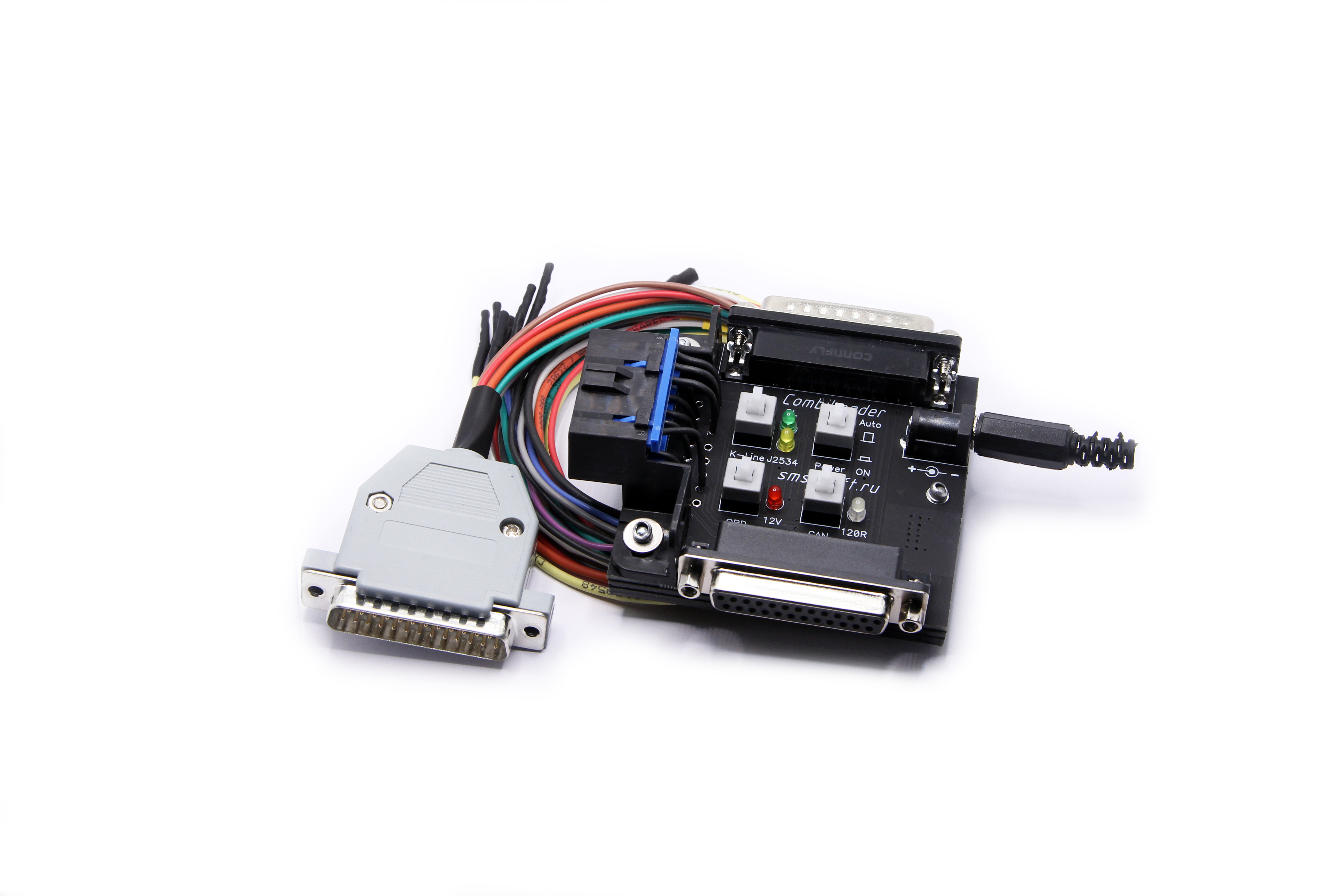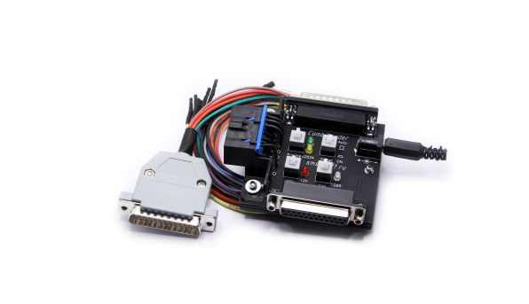 Подключается к адаптеру загрузчика вместо кабеля и к адаптеру J2534. Подключение к ЭБУ производится входящими в комплект проводами.